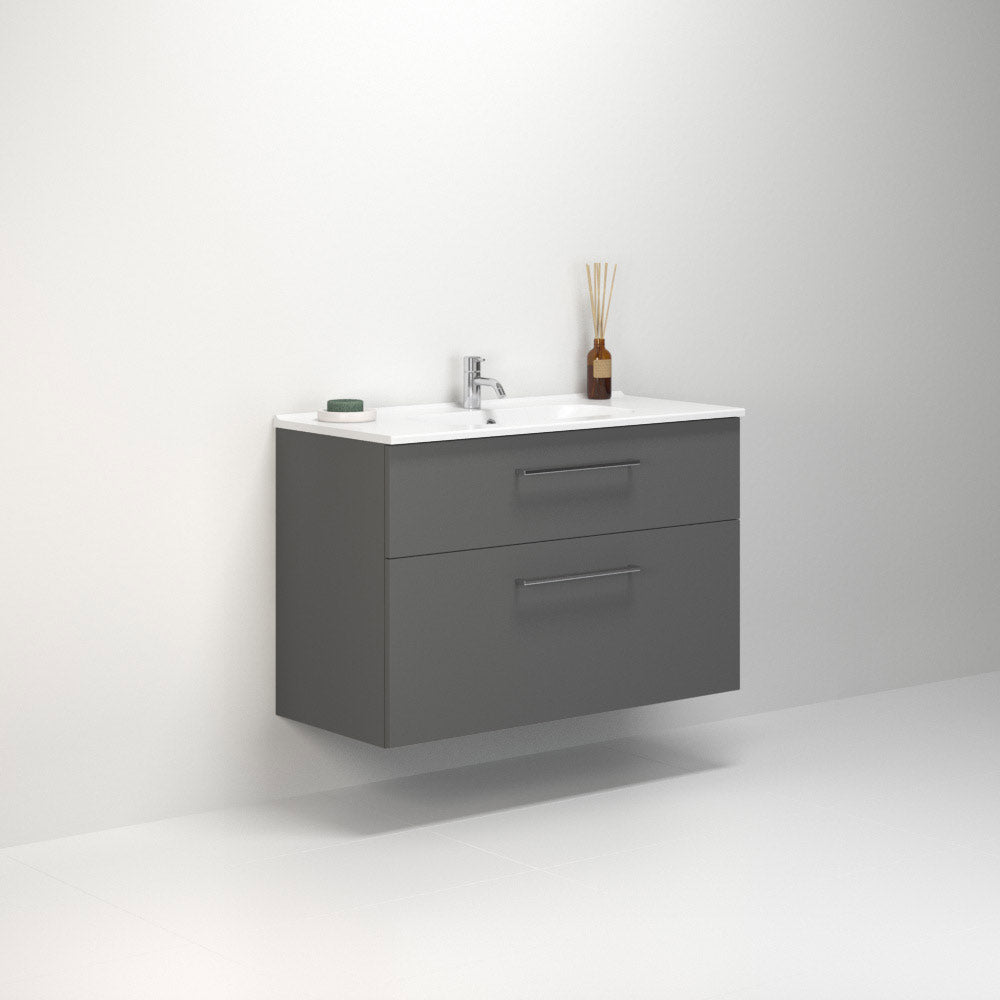 Dansani Luna badeværelsesmøbel med Kantate håndvask, 101 x 65,5 cm, mat grå