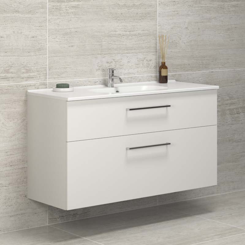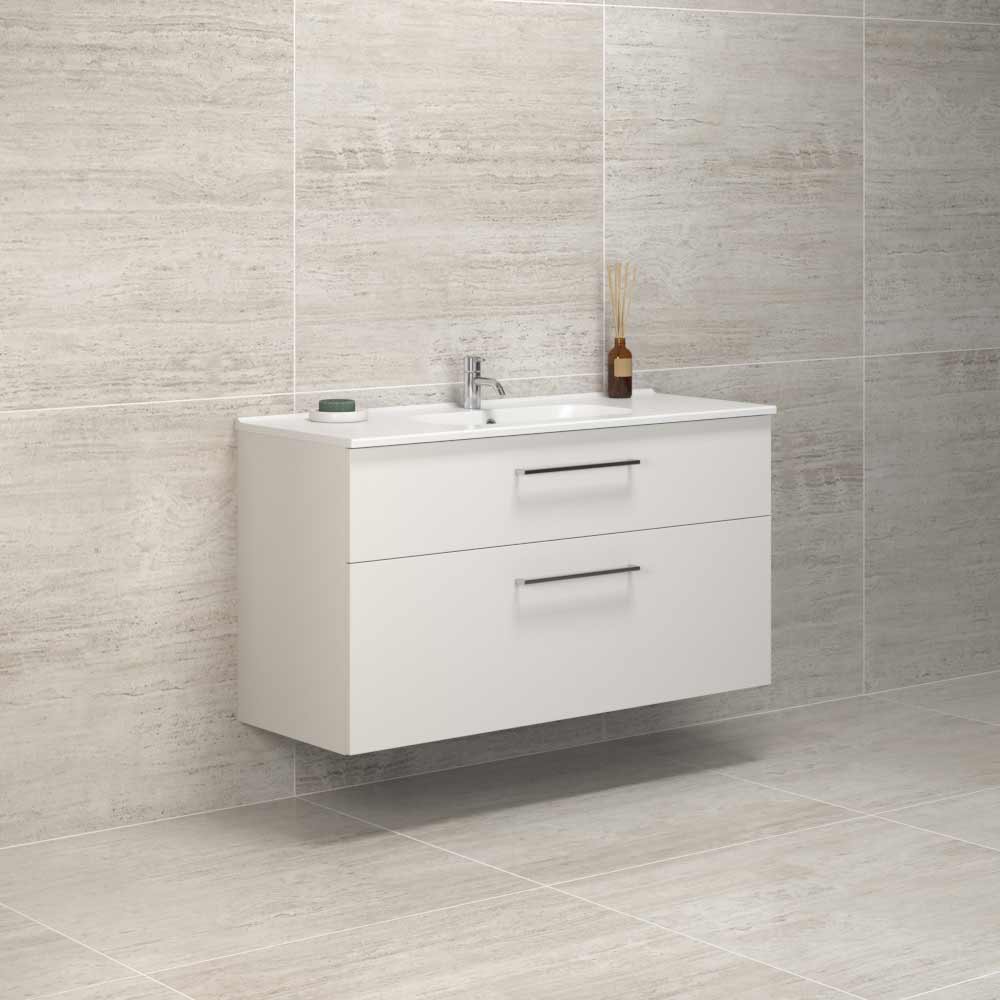 Sidder nuværende rørinstallation uden på væggen, er det ikke muligt at vælge et skuffeskab. Kontakt os derfor gerne for anden mulighed