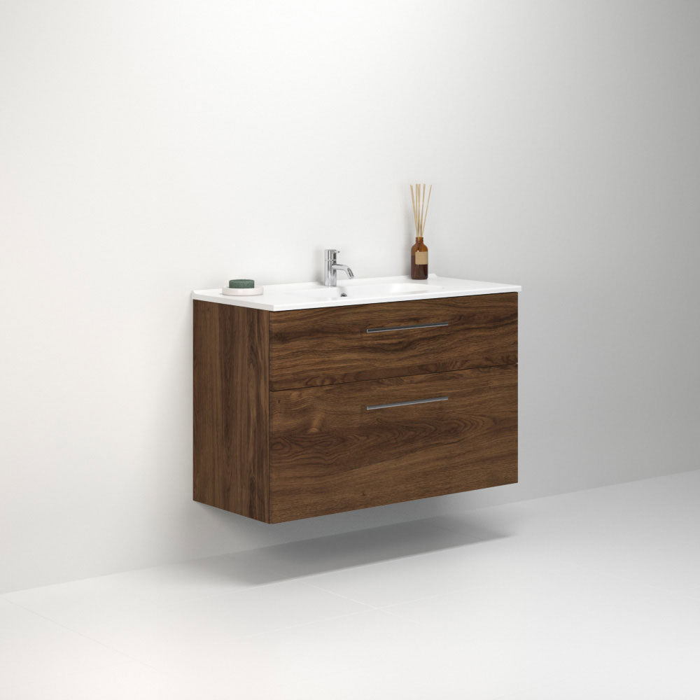 Sidder nuværende rørinstallation uden på væggen, er det ikke muligt at vælge et skuffeskab. Kontakt os derfor gerne for anden mulighed