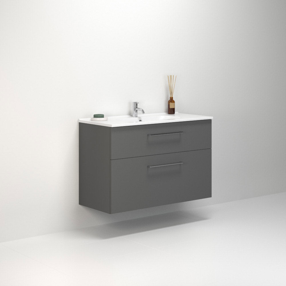 Sidder nuværende rørinstallation uden på væggen, er det ikke muligt at vælge et skuffeskab. Kontakt os derfor gerne for anden mulighed