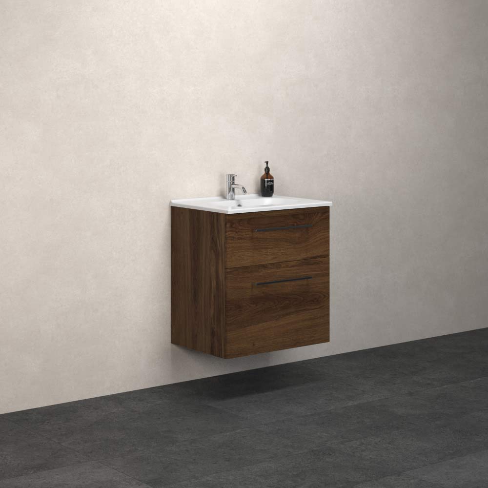 Dansani Luna badeværelsesmøbel med Minora håndvask, 61 x 65,5 cm, brun eg