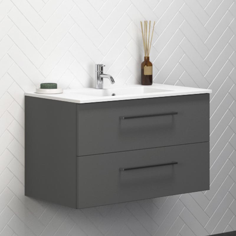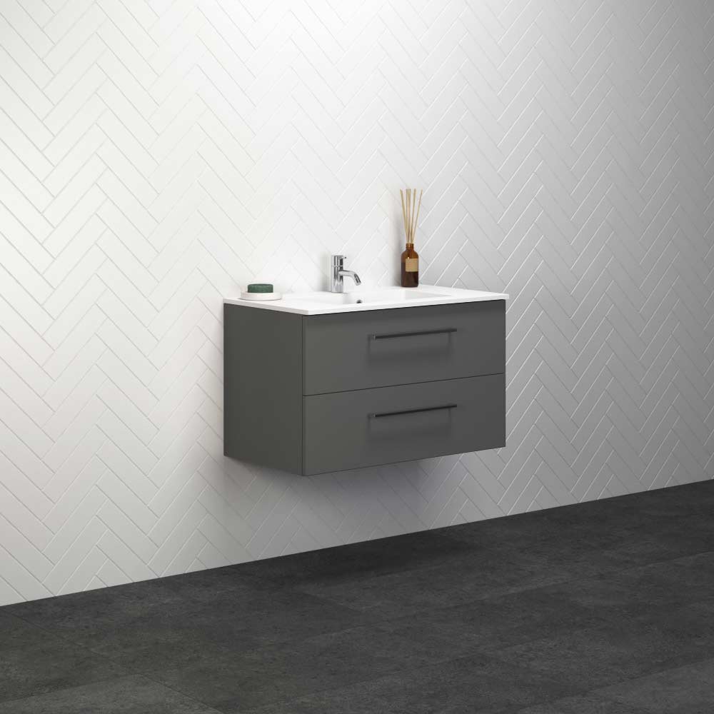 Dansani Luna badeværelsesmøbel med Minora håndvask, 81 x 49,5 cm, mat grå