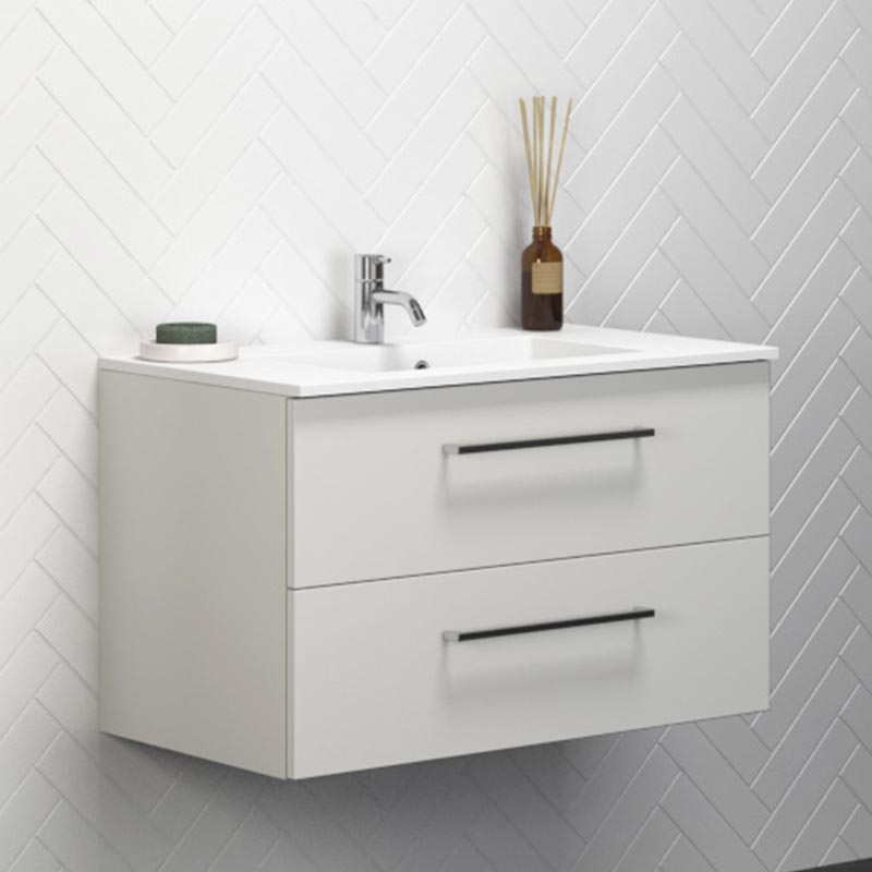 Sidder nuværende rørinstallation uden på væggen, er det ikke muligt at vælge et skuffeskab. Kontakt os derfor gerne for anden mulighed