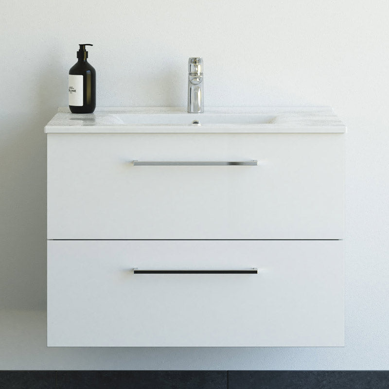 Sidder nuværende rørinstallation uden på væggen, er det ikke muligt at vælge et skuffeskab. Kontakt os derfor gerne for anden mulighed