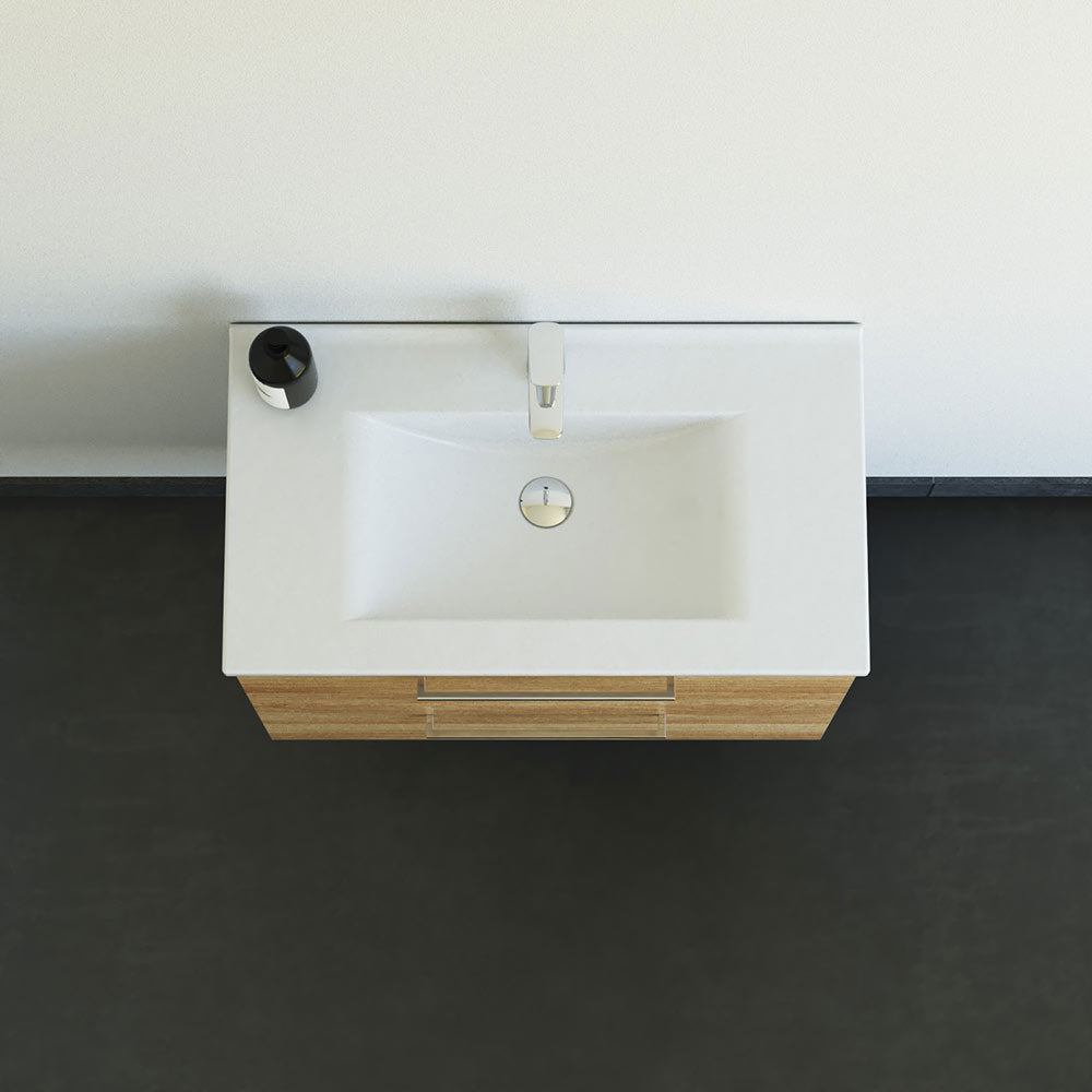 Amber håndvasken fra Dansani, inkluderet i denne møbelpakke, er skabt i et slidstærkt sanitetsporcelæn. Dens blanke overflade og slanke design gør den nem at rengøre og er et kendetegn for den altid høje kvalitet, som Dansani leverer. Den rummelige vask har et generøst bassin og tilbyder god plads til at placere sæbe og andre nødvendigheder inden for rækkevidde med afsætningsplads på begge sider og bagtil.
