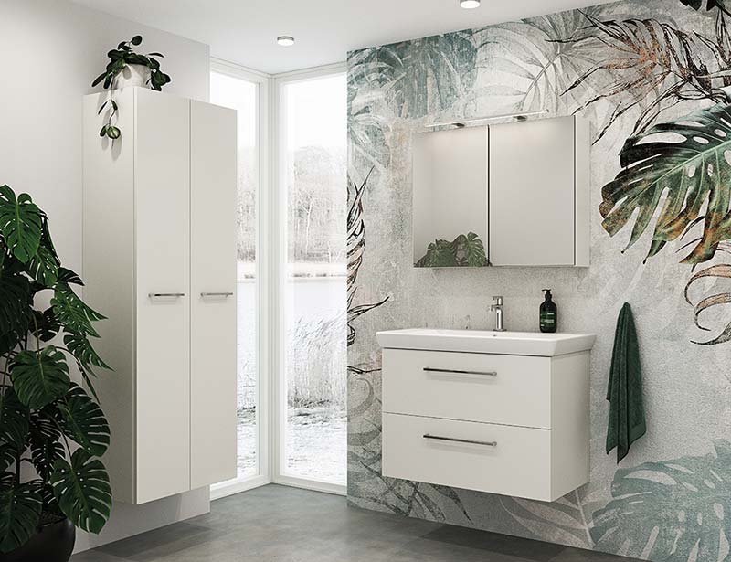 Sidder nuværende rørinstallation uden på væggen, er det ikke muligt at vælge et skuffeskab. Kontakt os derfor gerne for anden mulighed