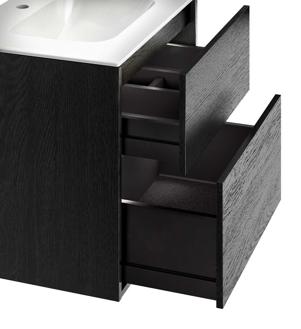 Sidder nuværende rørinstallation uden på væggen, er det ikke muligt at vælge et skuffeskab. Kontakt os derfor gerne for anden mulighed