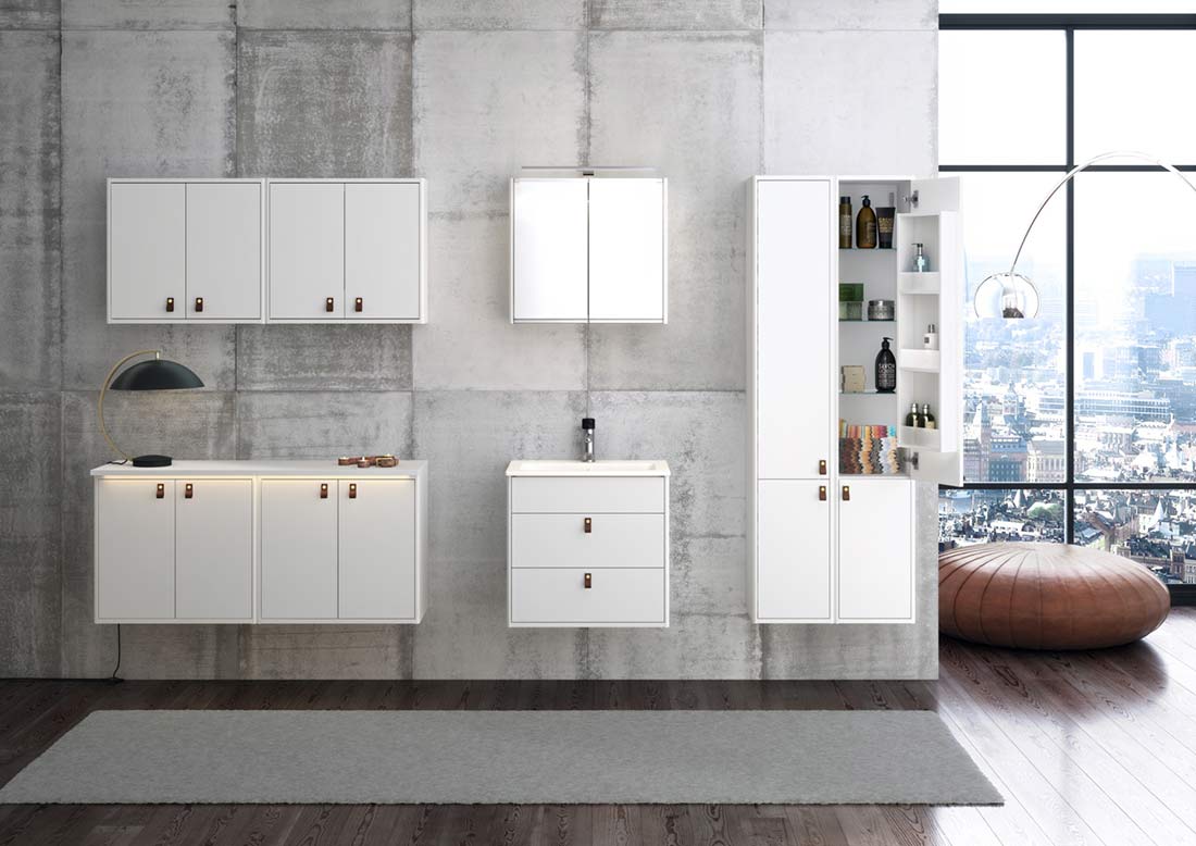 Sidder nuværende rørinstallation uden på væggen, er det ikke muligt at vælge et skuffeskab. Kontakt os derfor gerne for anden mulighed