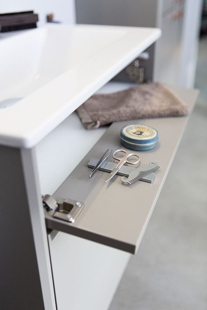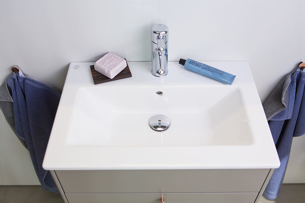 Sidder nuværende rørinstallation uden på væggen, er det ikke muligt at vælge et skuffeskab. Kontakt os derfor gerne for anden mulighed