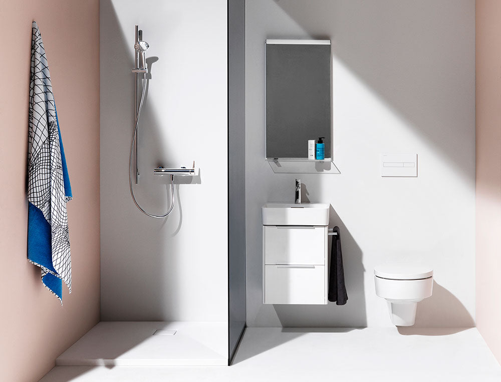Sidder nuværende rørinstallation uden på væggen, er det ikke muligt at vælge et skuffeskab. Kontakt os derfor gerne for anden mulighed