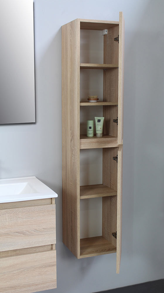 Fuldfør din Sanibell Online kollektion ved at tilføje et matchende højskab for at skabe en gennemført og stilfuld atmosfære på dit badeværelse. Opnå den perfekte balance mellem funktionalitet og æstetik med dette eksklusive Sanibell Online møbelsæt.