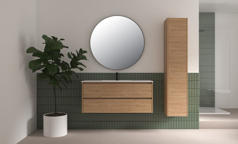 Sidder nuværende rørinstallation uden på væggen, er det ikke muligt at vælge et skuffeskab. Kontakt os derfor gerne for anden mulighed
