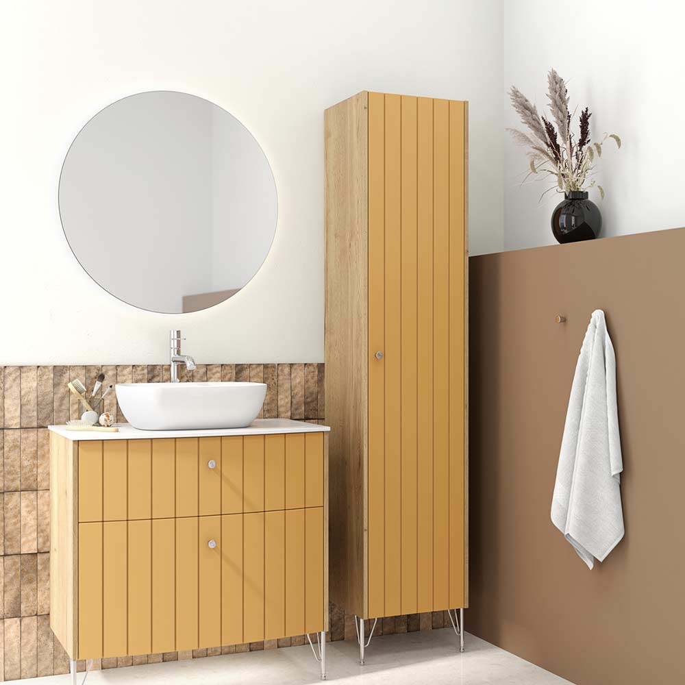 Er elinstallationen ikke gemt bag spejlet trækkes der et synligt kabel langs væggen