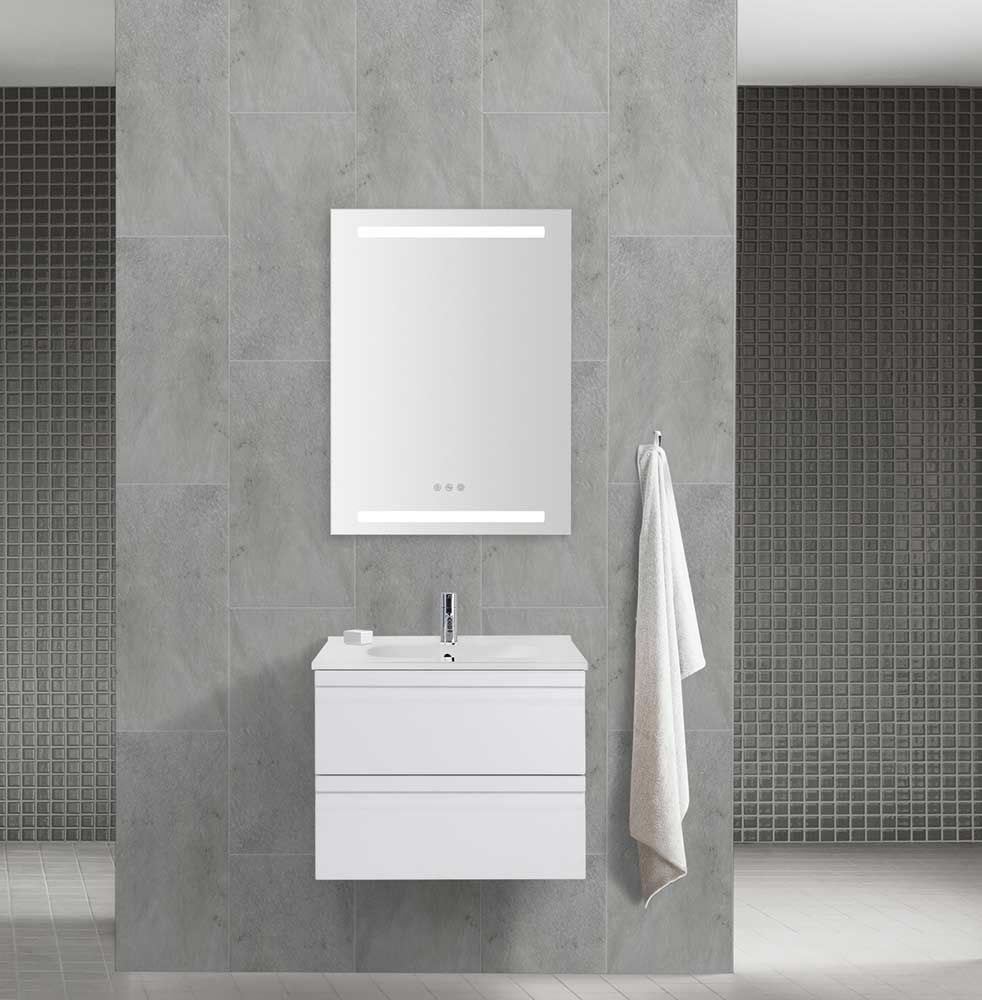 Dansani Level badeværelsesspejl med vandret lys i top og bund, 80x60 cm