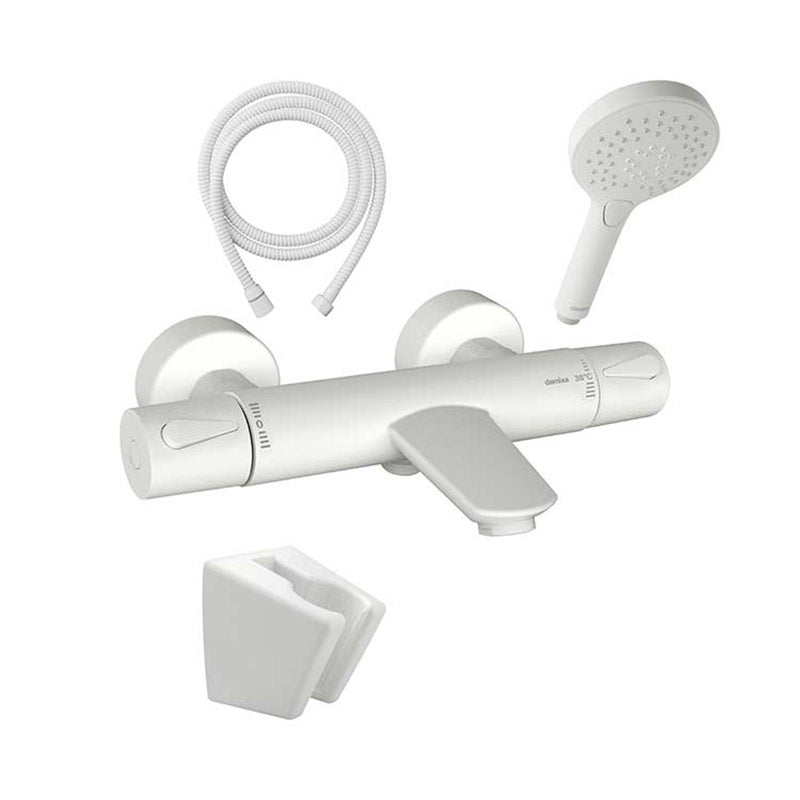 Damixa Silhouet badekararmatur med håndbruser, slange, og holder, mat hvid