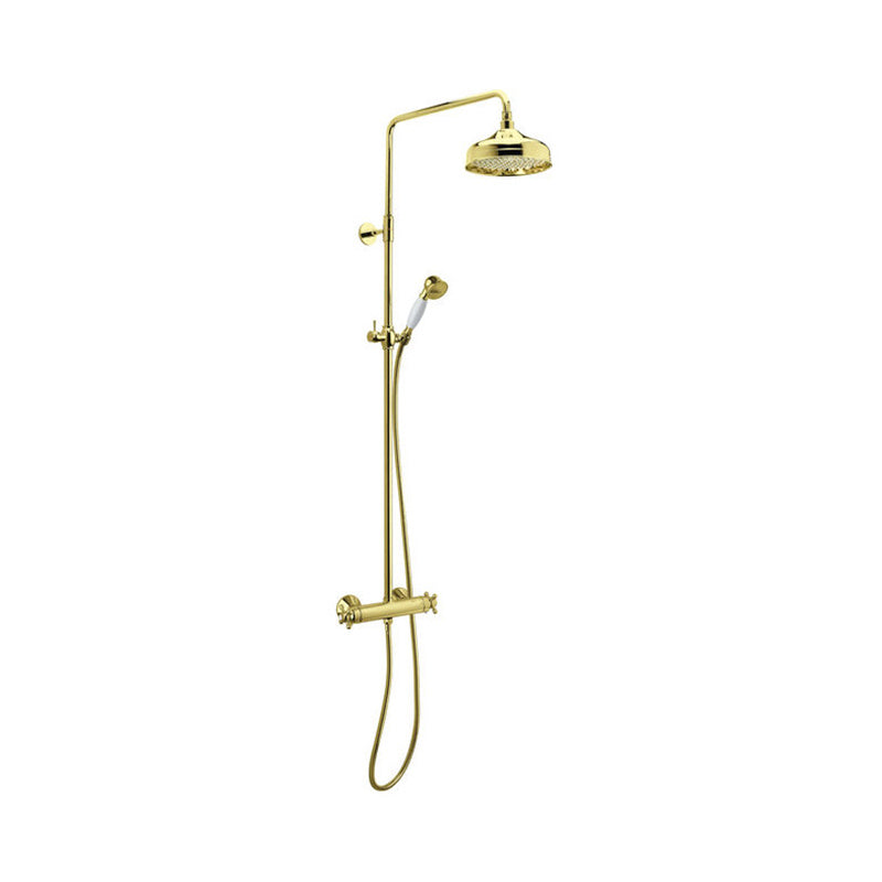 Damixa Tradition brusesæt i poleret messing er skabt til dig, der ønsker et badeværelse med klassisk charme og et strejf af luksus. Den blanke messingfinish giver et varmt, romantisk udtryk, der passer perfekt til ældre lejligheder, herskabsboliger eller badeværelser, hvor du ønsker at fremhæve en nostalgisk stil.