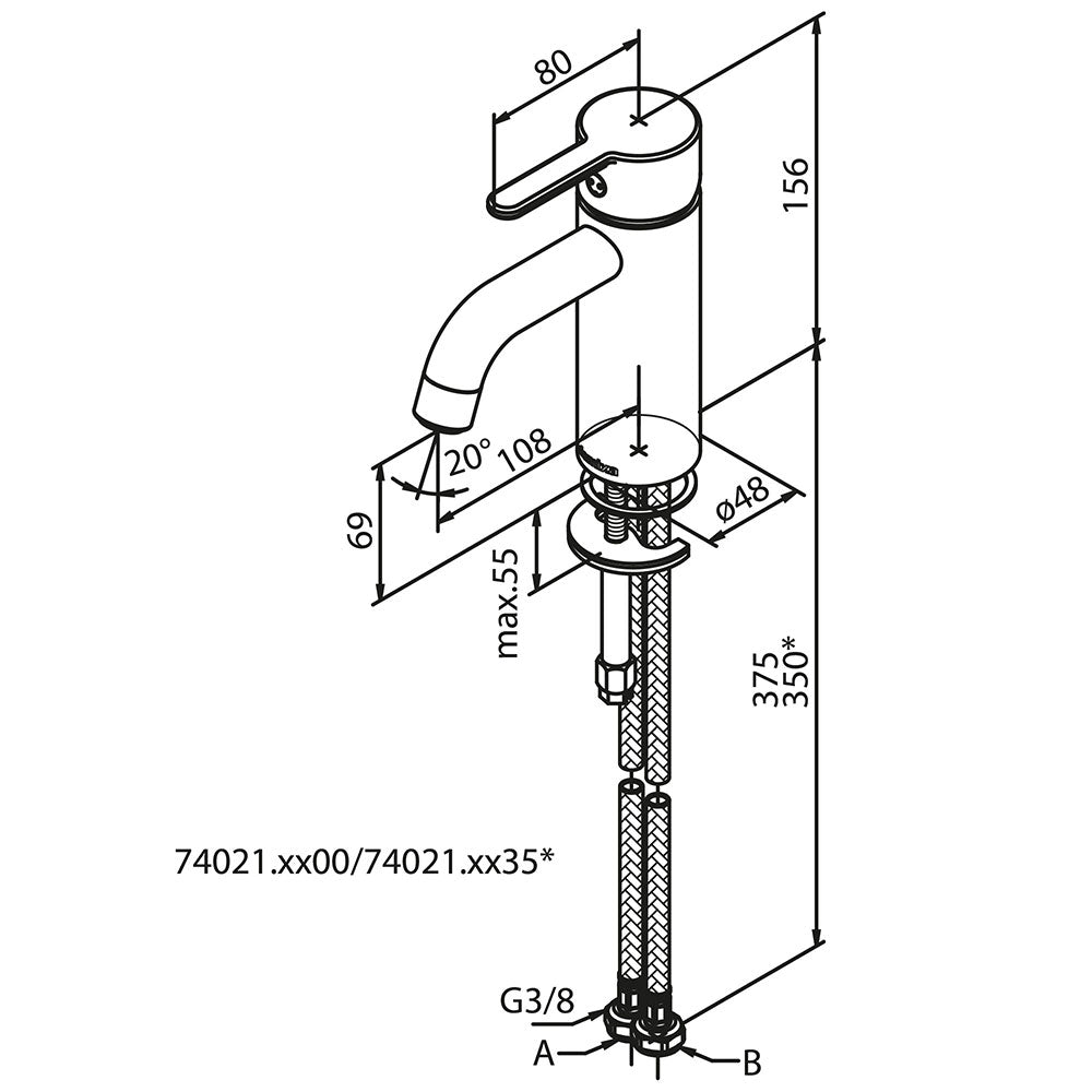 Installation af håndvaskarmatur indeholder: