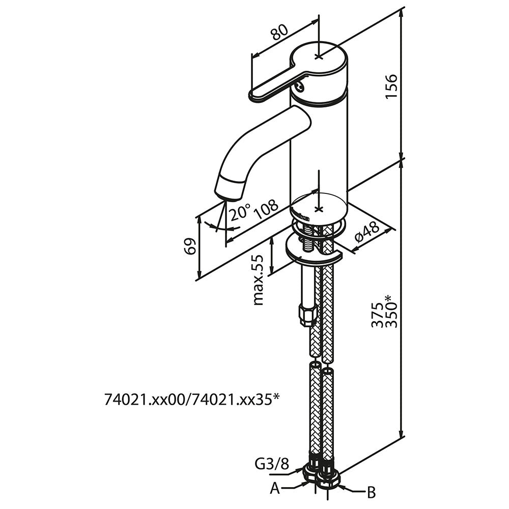 Damixa Silhouet håndvaskarmatur, S-size, poleret stål