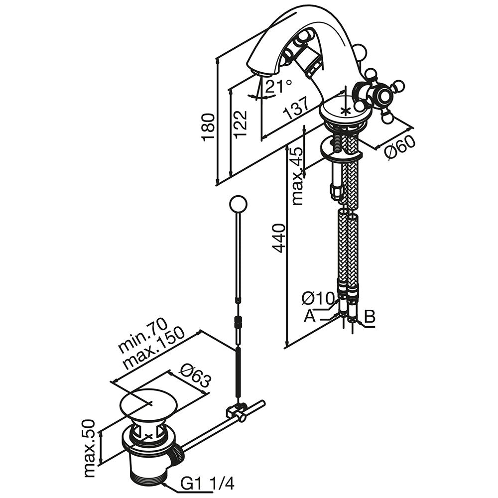 Damixa Tradition håndvaskarmatur m/løft-op bundventil, krom