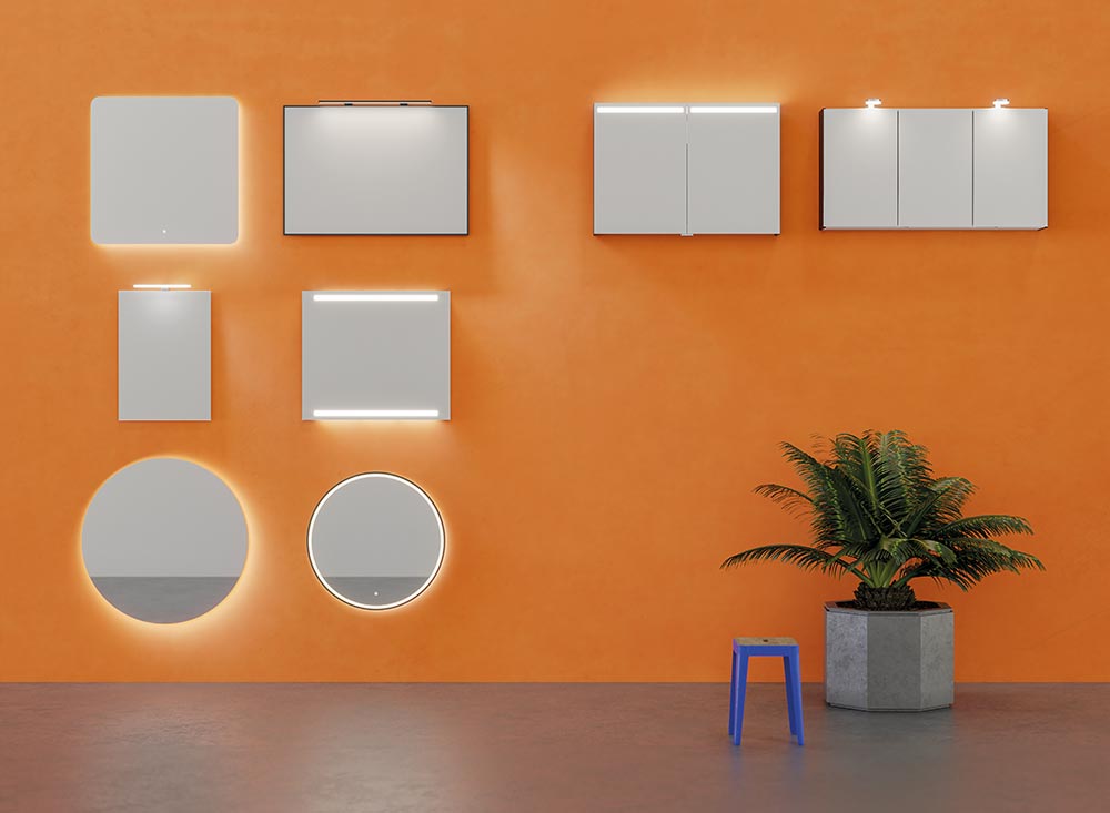 Er elinstallationen ikke gemt bag spejlet trækkes der et synligt kabel langs væggen