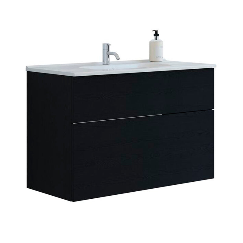 Dansani Luna badeværelsesmøbel 101 cm med Kantate vask i sort eg er et ideelt valg til dig, der ønsker et moderne, markant og funktionelt badeværelsesmøbel. Kantate porcelænsvasken har en glat og rengøringsvenlig overflade, som gør det nemt at holde vasken flot i det daglige og sikrer høj holdbarhed.