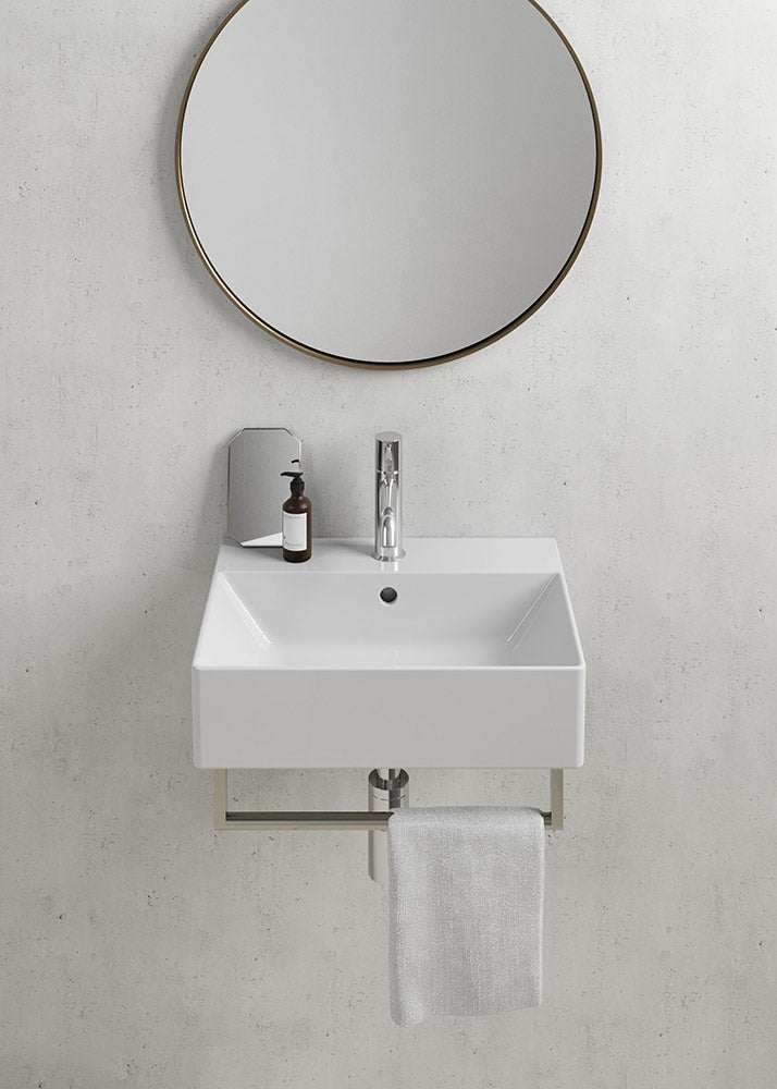 GSI Kube X håndvask – Minimalistisk design med maksimal funktionalitet. GSI Kube X håndvask er det perfekte valg til dig, der ønsker et stilrent og funktionelt badeværelse. Med sit moderne, vægmonterede design og kompakte dybde passer den perfekt til både rummelige badeværelser og små gæstetoiletter, hvor pladsen skal udnyttes optimalt.