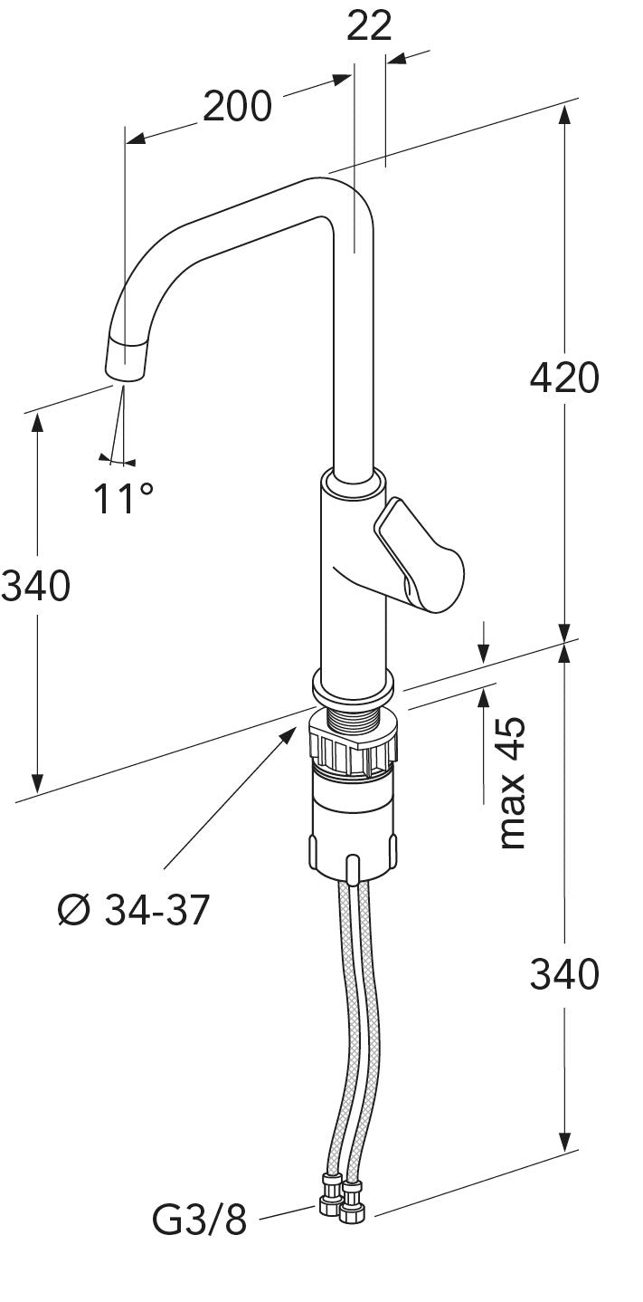 Installation af køkkenarmatur indeholder: