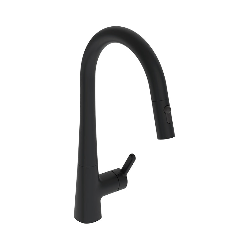 Oplev Oras Inspera køkkenarmatur i mat sort med udtræk – et moderne og eksklusivt køkkenarmatur i sort, der kombinerer funktionalitet og stilrent design i særklasse. Det matte sorte look giver et elegant og markant udtryk, der passer perfekt til det nordiske og minimalistiske køkkendesign.