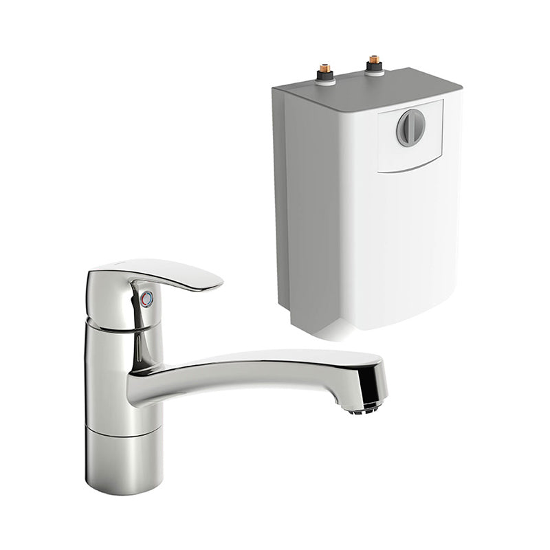 Installation af køkkenarmatur og varmtvandsbeholder indeholder: