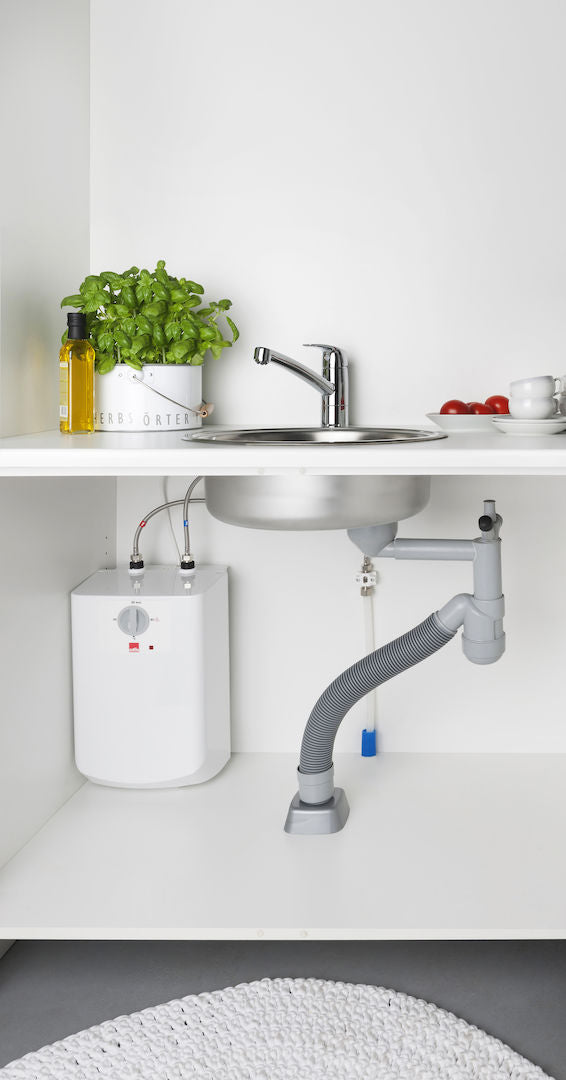 Der skal være en 230 V stikkontakt ved vask eller i skab. Hvis der skal trækkes 230 V frem til varmtvandsbeholder, er dette ikke medregnet i tilbuddet.