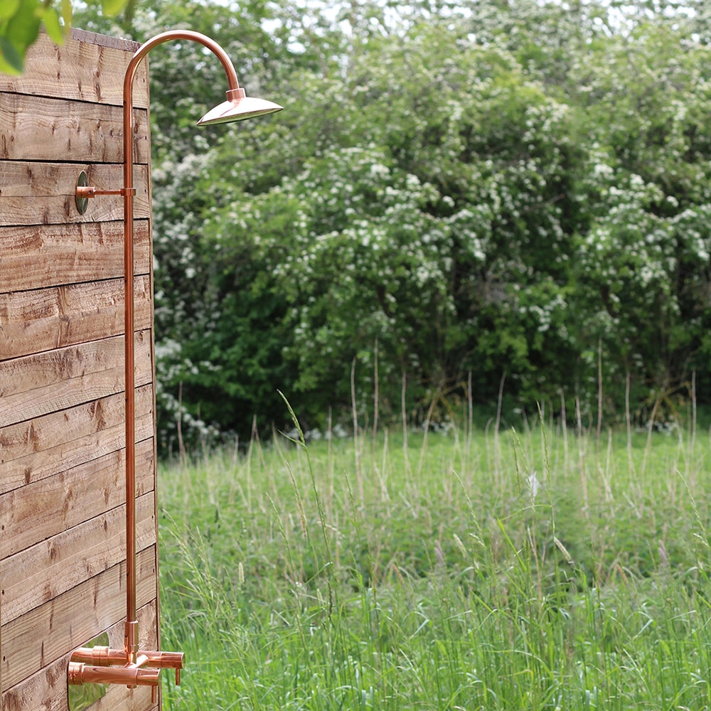 Den væghængte Eqi udendørs bruser fra Frostline er en frostfri og elegant løsning. Det tidløse design gør, at bruseren kan passe til ethvert miljø. Med en EQI udendørs bruser kan du også selv vælge, om du foretrækker et beroligende og varmt bad eller et køligt og opkvikkende skyl. Den væghængte udendørs bruser er håndlavet i Danmark og produceret af solide materialer, så du får en løsning, som du kan få glæde af i mange år. Dette produkt er udført i kobber. Kobber kan give dit udemiljø et helt unikt præg. Materialet patinerer smukt over tid. Overfladen udvikler en særlig irgrøn patina, særligt på berøringspunkterne, hvilket gør hver enkelt kilde helt unik afhængigt af, hvordan den bruges.