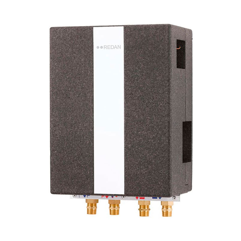 Danfoss Redan Akva Lux II er en brugsvandsvarmeveksler til fjernvarme, der producerer varmt vand øjeblikkeligt via gennemstrømningsprincip – helt uden varmtvandsbeholder. Løsningen er særligt velegnet til boliger med højt varmtvandsforbrug og er et oplagt valg ved udskiftning af eksisterende varmeveksler.