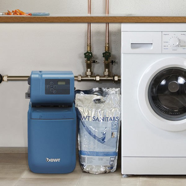 Levering og montering af BWT AQA Basic blødgøringsanlæg (4 personer) indeholder:
