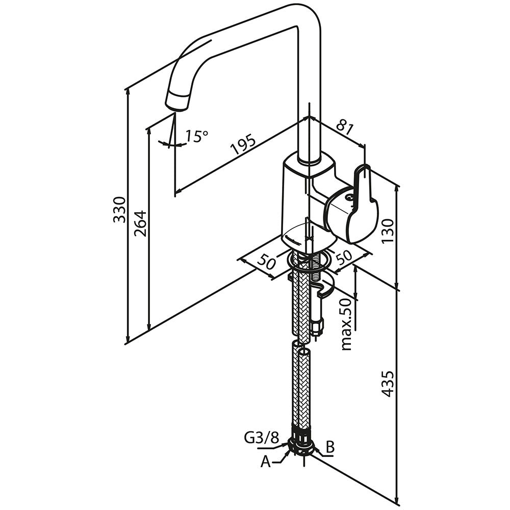 Installation af køkkenarmatur indeholder: